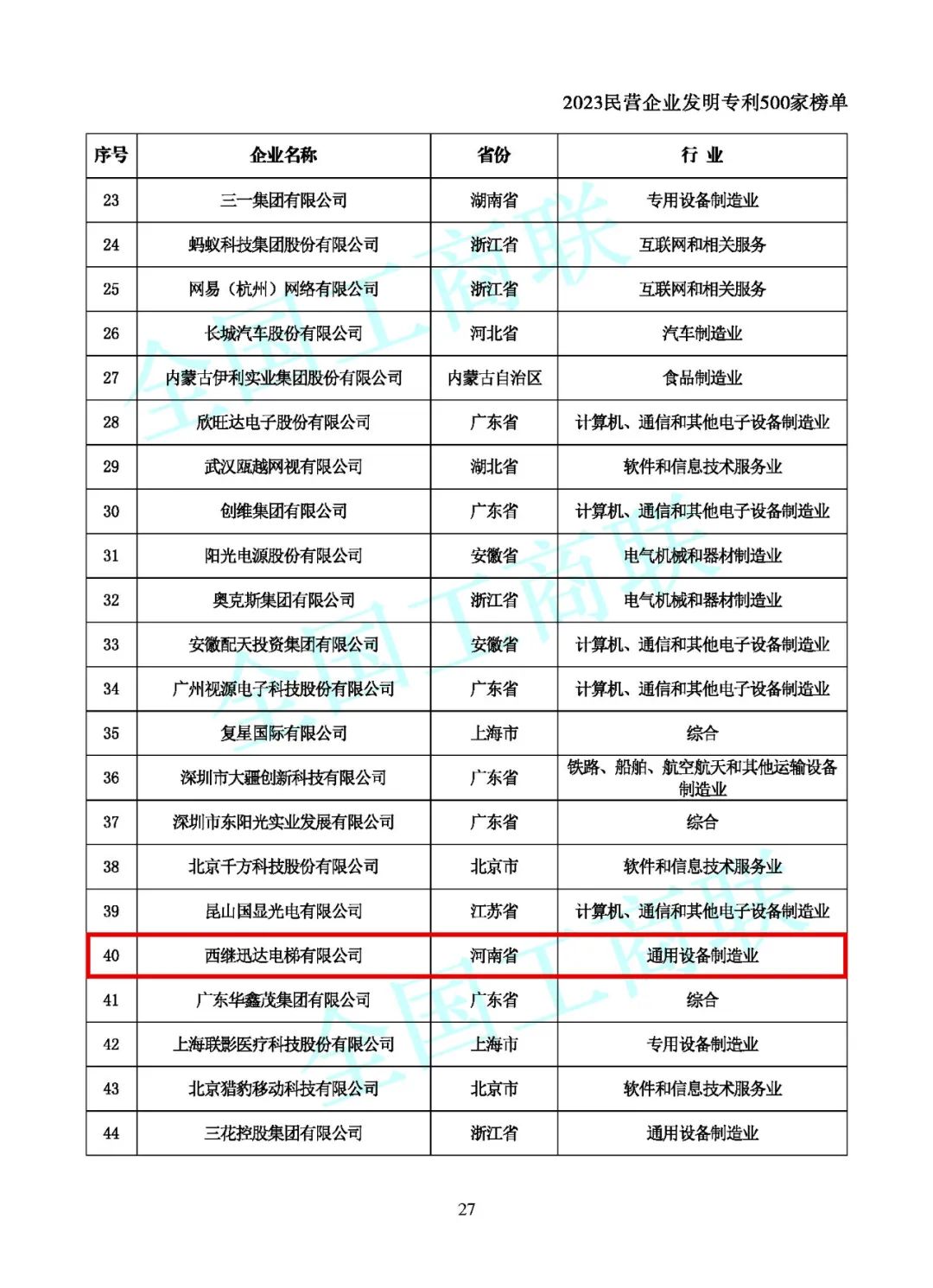 10 月 19 日,2023 全國(guó)民營(yíng)企業(yè)科技創(chuàng)新與標(biāo)準(zhǔn)創(chuàng)新大會(huì)在長(zhǎng)沙舉行。中央統(tǒng)戰(zhàn)部副部長(zhǎng),全國(guó)工商聯(lián)黨組書(shū)記、常務(wù)副主席徐樂(lè)江出席會(huì)議。據(jù)悉,會(huì)上發(fā)布了 2023 民營(yíng)企業(yè)發(fā)明專利500 家榜單,8 家河南民營(yíng)企業(yè)上榜,西繼迅達(dá)位列榜單。