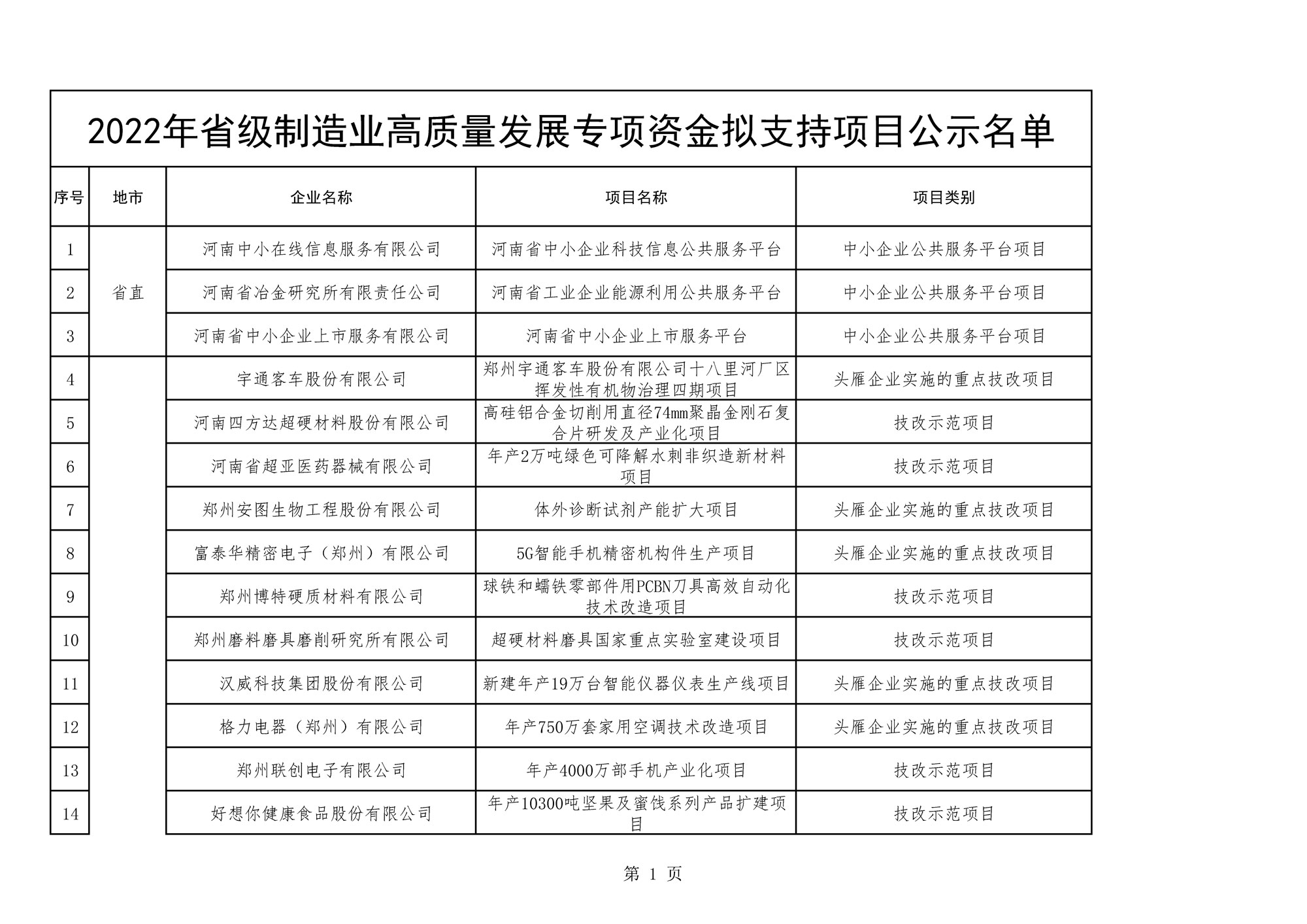 公司上榜2022年省級制造業高質量發展專項資金擬支持項目