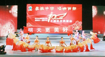 晚7時整,“愛我中華 唱響西繼”暨西繼十周年慶典大型文藝晚會,在全體管理人員合唱的《今天是您的生日》中拉開了帷幕。公司領導與身披紅色授帶的優秀員代表一起興致勃勃在晚會現場前排就座。晚會現場座無虛席,觀眾手持熒光棒、小國旗為演出鼓掌喝彩。歡快的舞蹈、嘹亮的歌聲抒發了西繼人熱愛公司、祝福祖國的心情。整場晚會以跌宕起伏的三個篇章華麗呈現,即“歌唱祖國”、“歡聚一堂”和“走向輝煌”,另外設有三個獎品豐厚的抽獎環節。