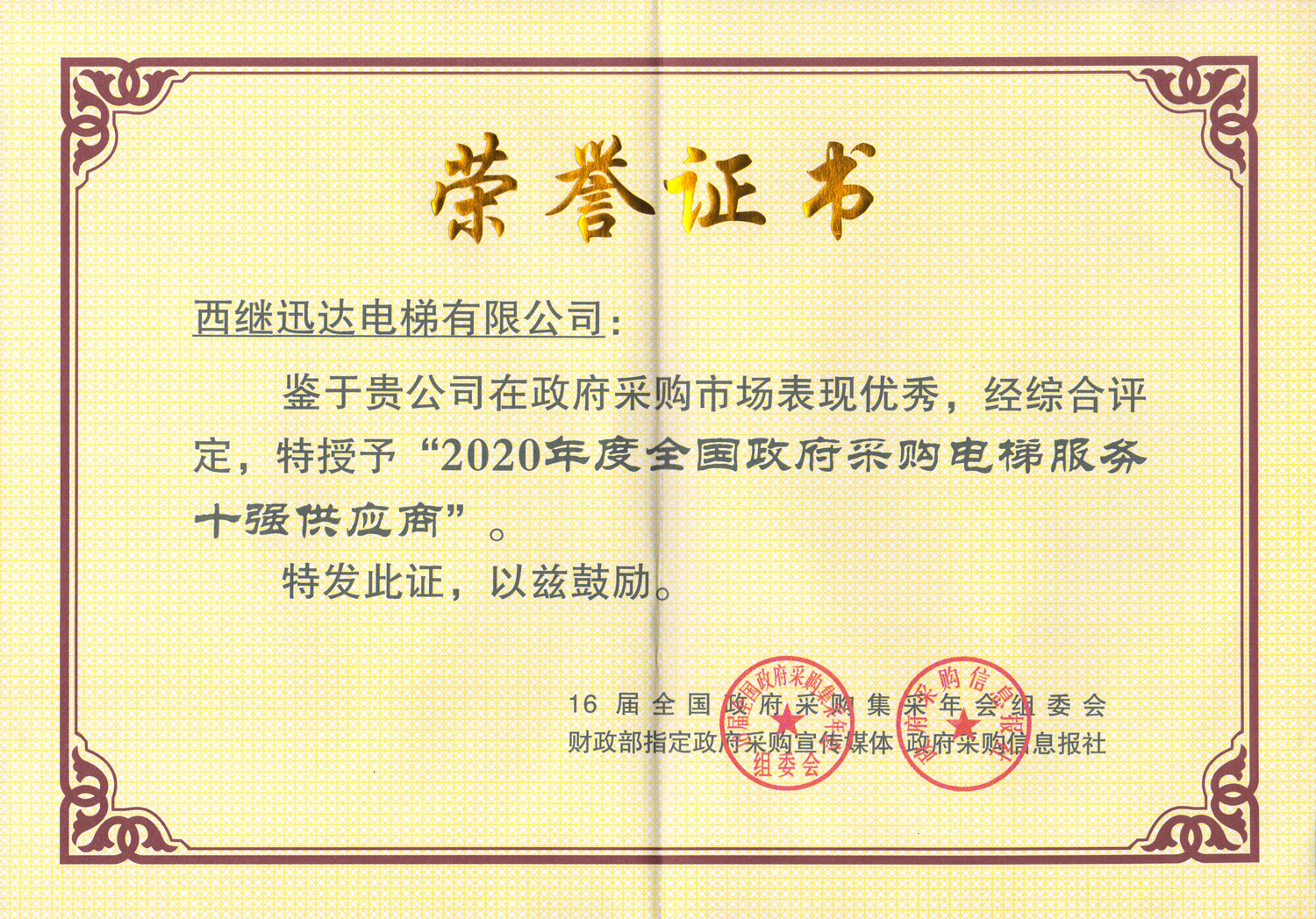 1月21日,備受電梯行業(yè)矚目的全國政府采購電梯優(yōu)秀供應(yīng)商評選結(jié)果,在北京重磅揭曉。西繼迅達(dá)電梯憑借卓越表現(xiàn),獲得2020年度“全國政府采購電梯十佳供應(yīng)商”、“全國政府采購電梯服務(wù)十強(qiáng)供應(yīng)商”、“全國政府采購舊樓加裝電梯首選品牌”等三項(xiàng)行業(yè)大獎(jiǎng)。