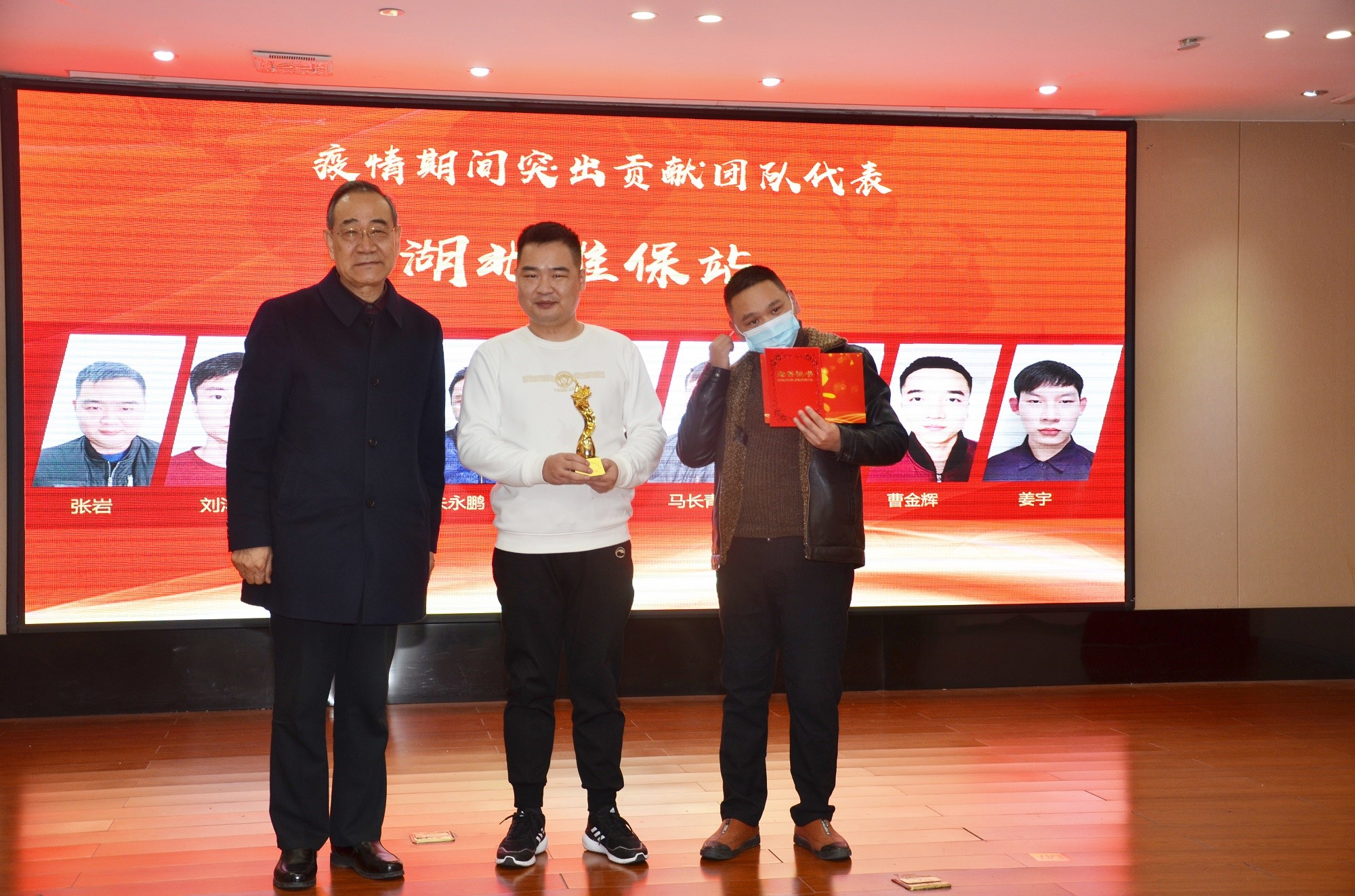 會(huì)上,公司劉董事長(zhǎng)親自為獲得疫情期間特殊貢獻(xiàn)獎(jiǎng)的湖北維保站頒發(fā)獎(jiǎng)杯及榮譽(yù)證書。