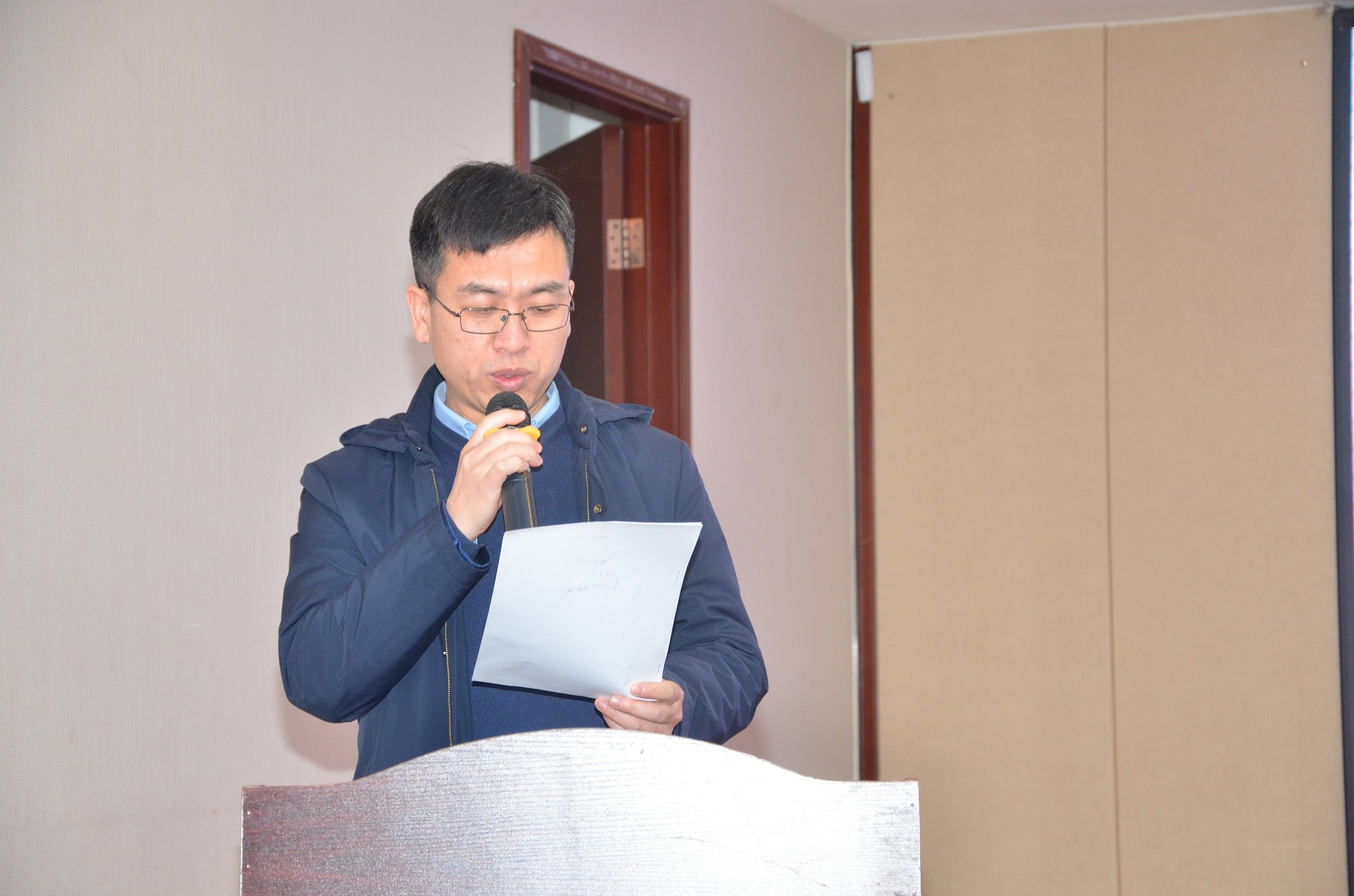 公司人力資源總監(jiān)趙紅杰宣讀維保區(qū)域調(diào)整及人員任命文件