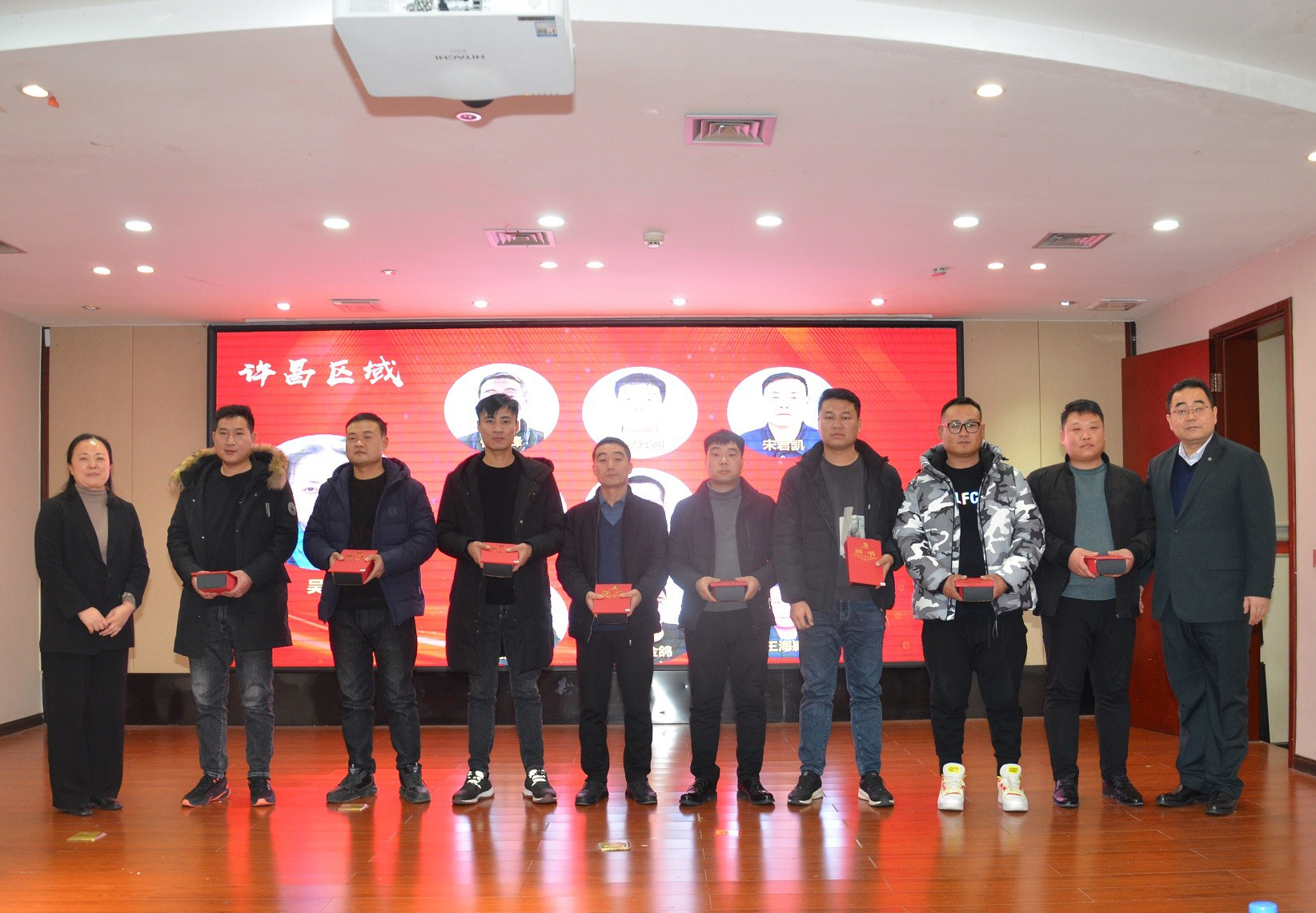 最后,劉剛總經(jīng)理親自上臺(tái)為新任命的14名區(qū)域維保總監(jiān)及94名維保站負(fù)責(zé)人,頒發(fā)聘書及新工牌。