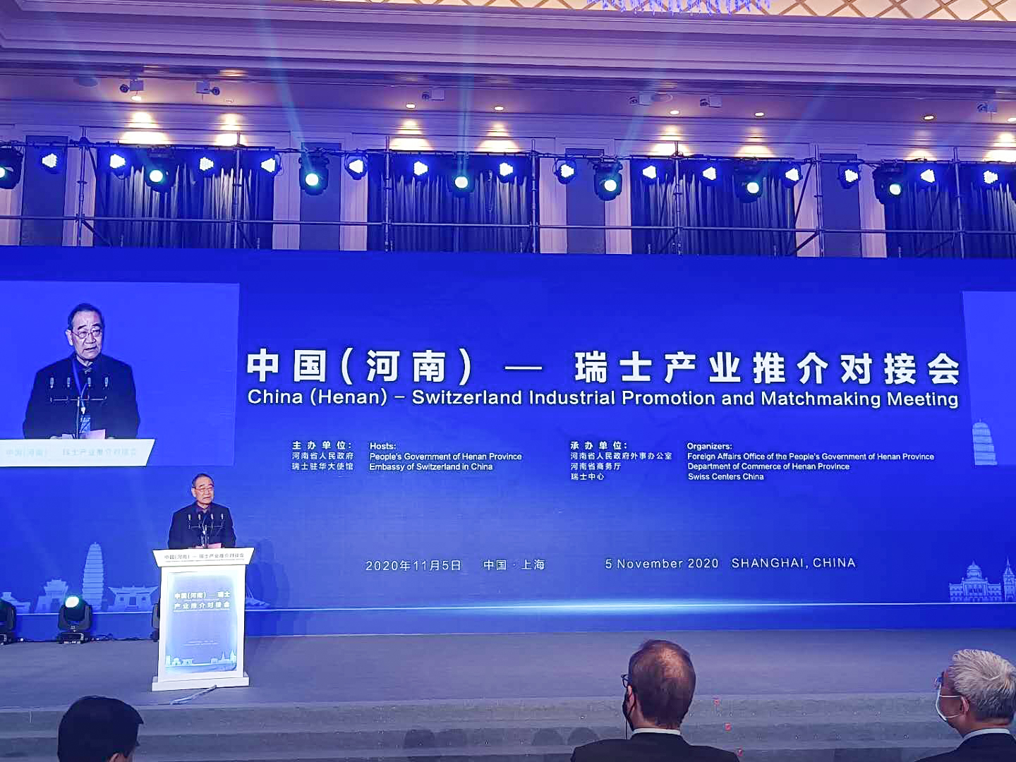 11月5日,河南省人民政府、瑞士駐華大使館在上海進博會上,隆重舉辦中國(河南)—瑞士產(chǎn)業(yè)推介對接會。西繼迅達董事長劉金忠應邀參加了上海進博會中瑞產(chǎn)業(yè)推介對接會,并作精彩發(fā)言。
