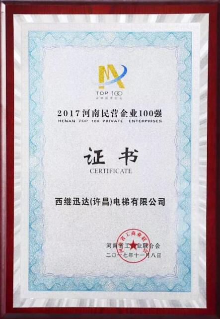 西繼迅達(dá)榮膺河南省百強(qiáng)企業(yè)稱號(hào)