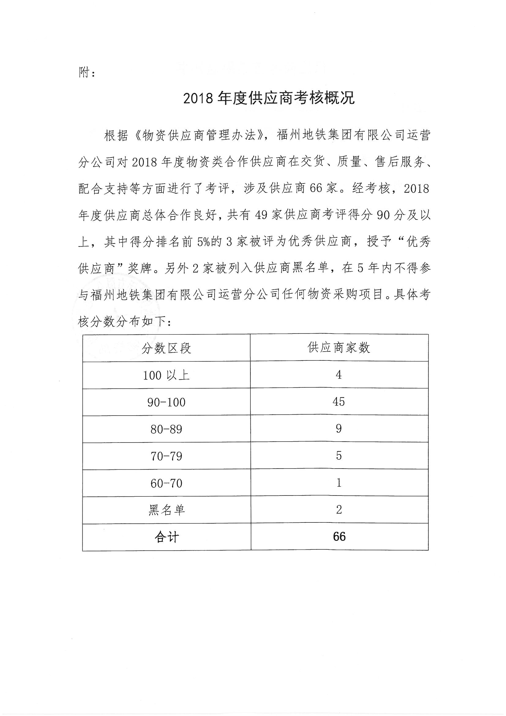 憑借優良的電梯質量和貼心細致的維保服務,西繼迅達電梯在福州地鐵集團有限公司2018年度供應商考核中,獲得100分的優異成績,得到了福州地鐵集團有限公司的高度認可。