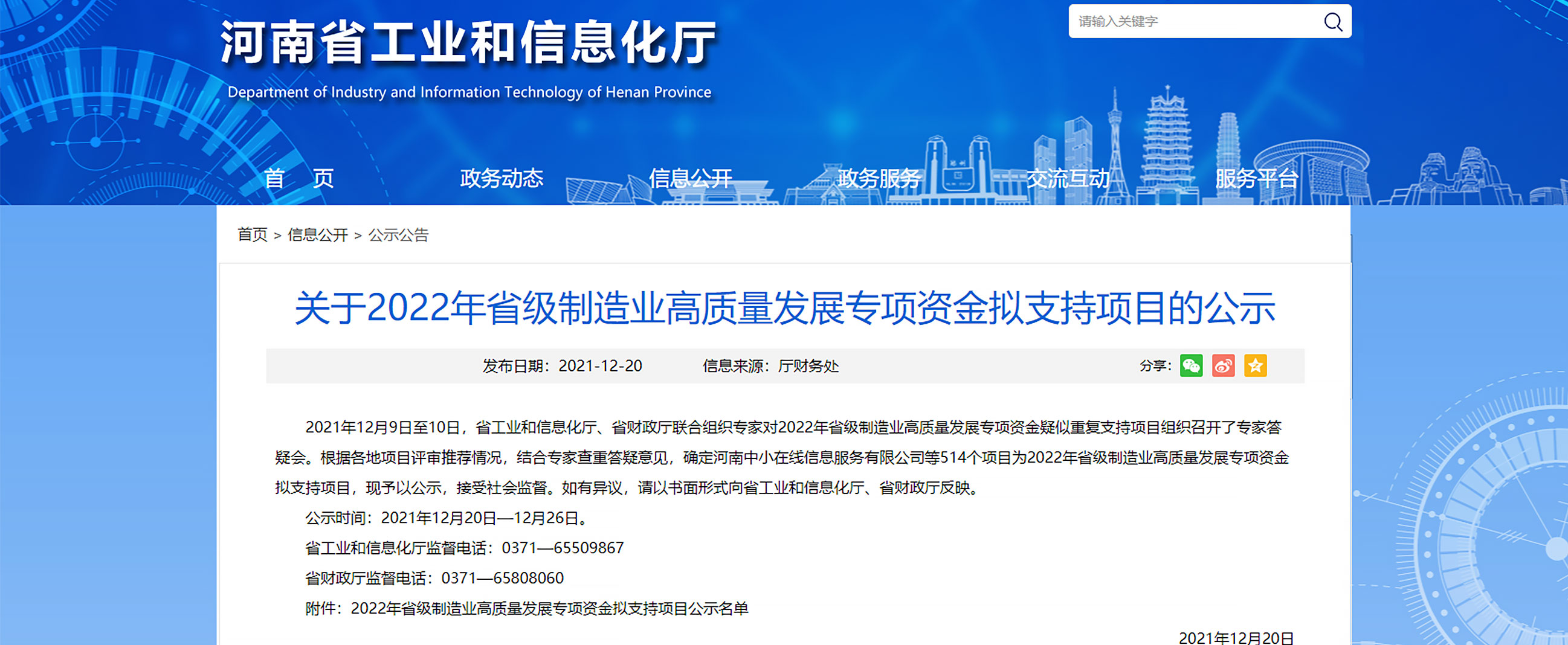 公司上榜2022年省級制造業(yè)高質(zhì)量發(fā)展專項資金擬支持項目